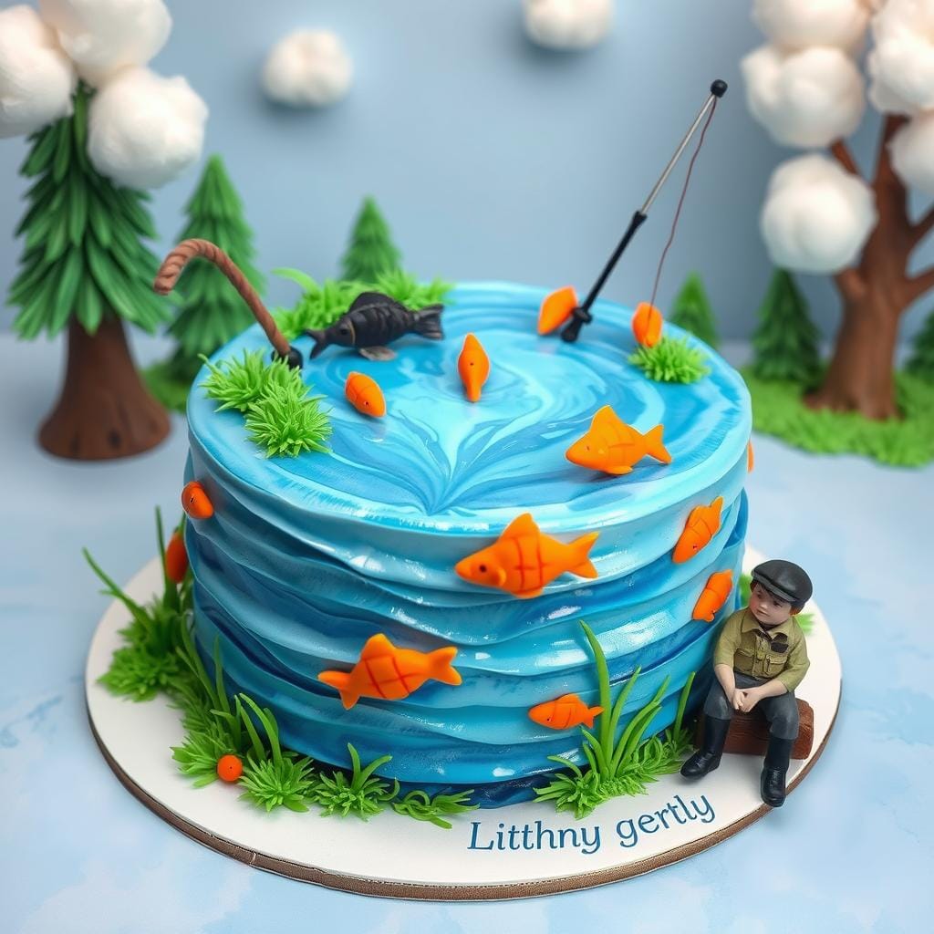 The classic fishing scene is a nostalgic choice for cake design. To make it, consider these elements: