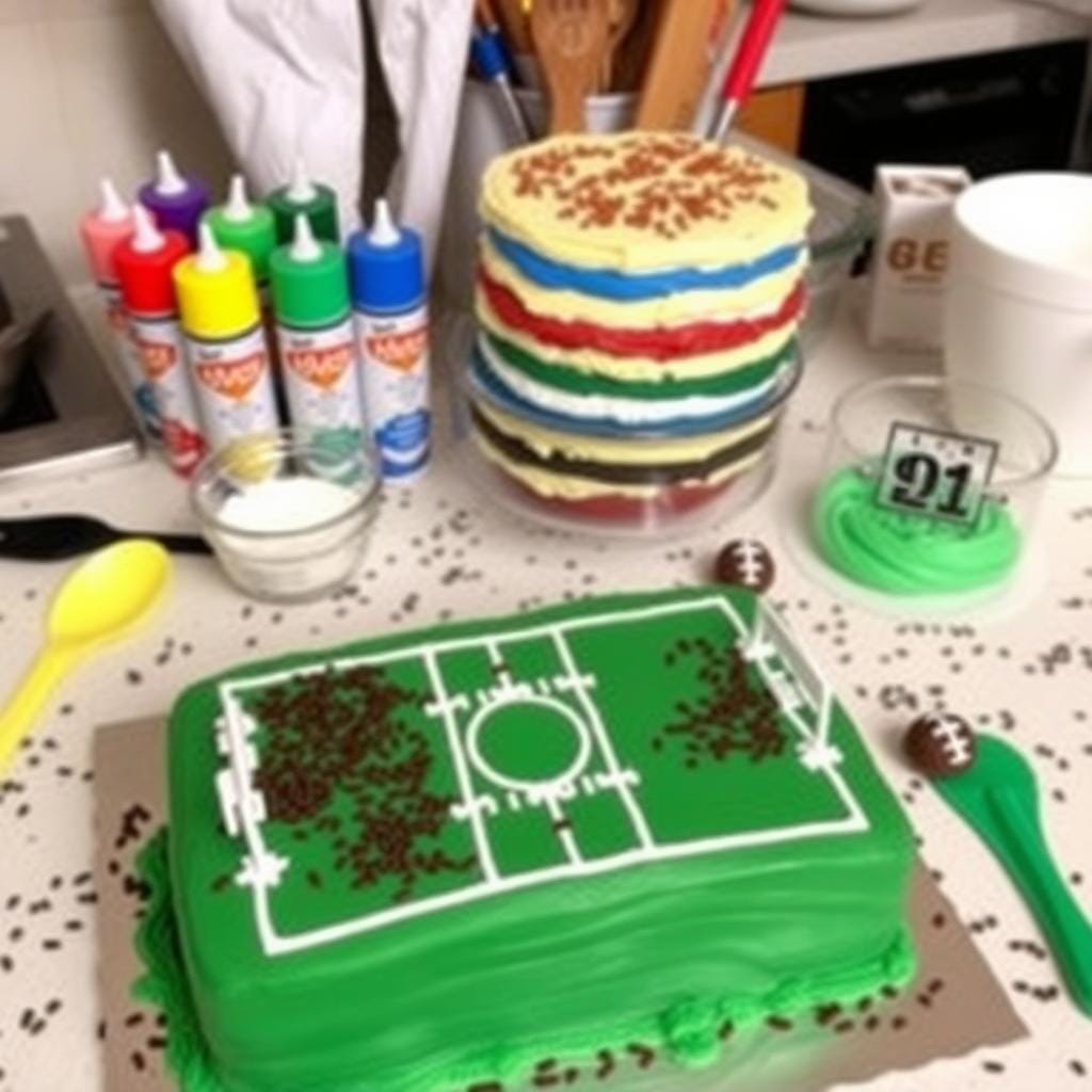 “The right tools can turn an ordinary cake into an extraordinary football field masterpiece!”