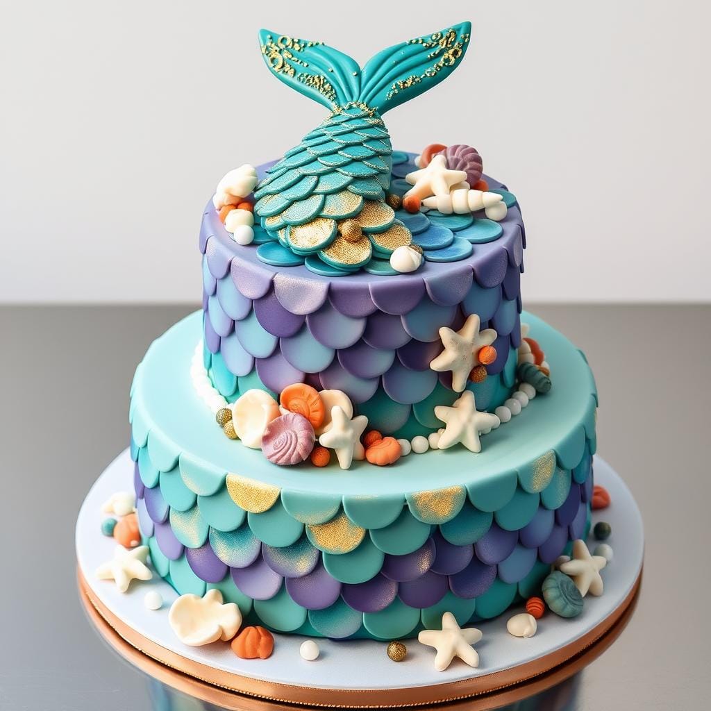 Mermaid cakes often use blue, green, and teal colors. They also feature iridescent and metallic touches. The trend is to use ombré effects that look like the underwater world.